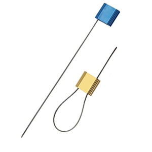 Precinto con cuerpo de aluminio de color, con cable de acero de 1,5 mm de diámetro. Para cerrarlo se introduce el extremo del cable en el orificio libre y se tira del mismo ajustándolo. Numerados y grabados bajorrelieve